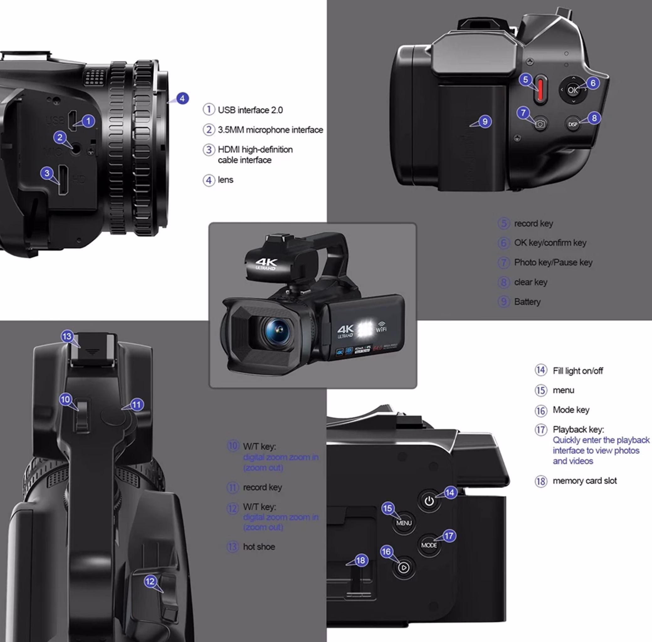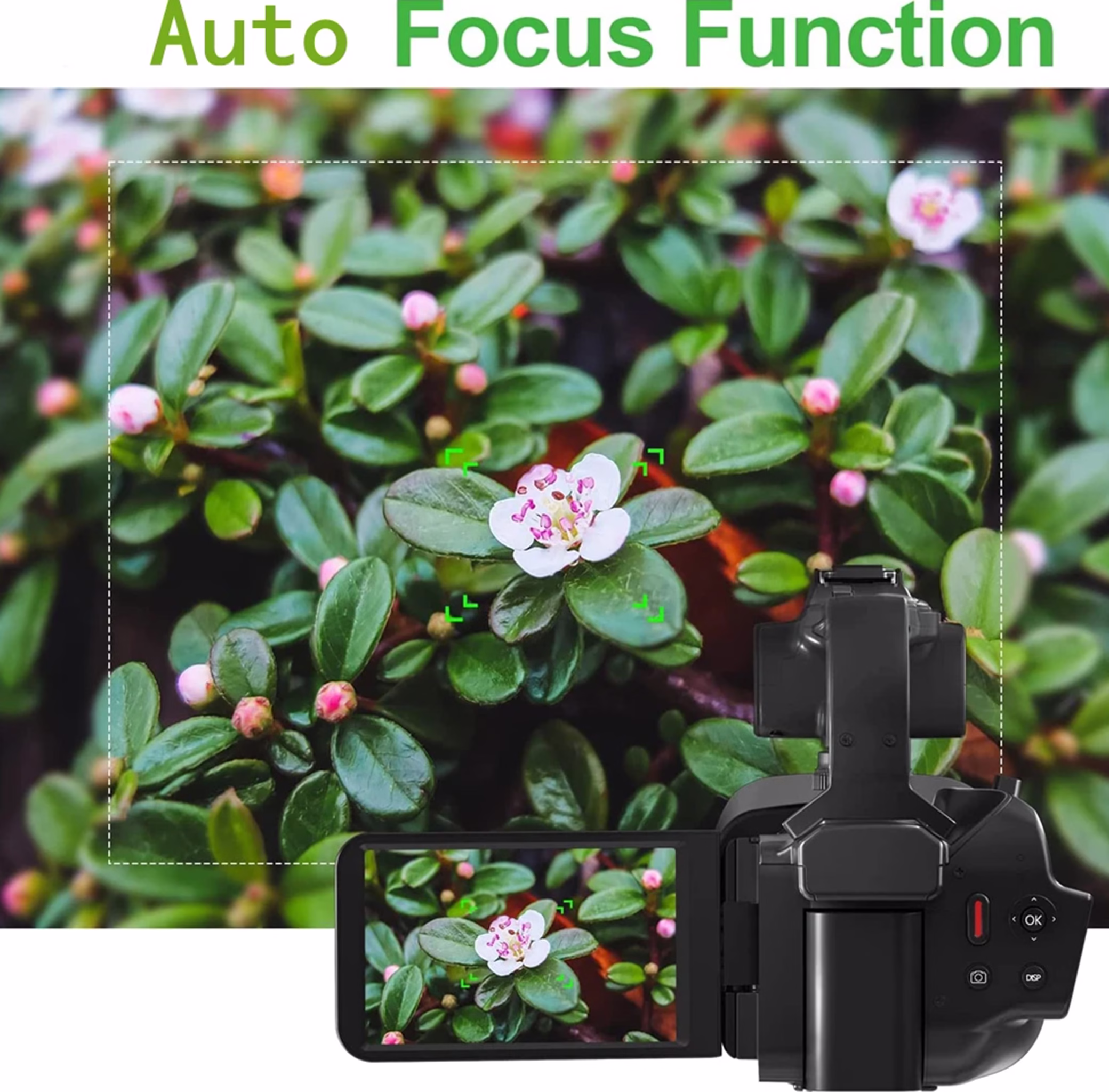 This 6K Professional Video Camera is a high‑performance 64MP digital camcorder designed for creators, vloggers, and content producers who demand sharp, cinematic-quality footage. It records stunning 6K resolution video, delivering exceptional detail and clarity that can be easily downscaled to 4K or 1080p for smooth playback on YouTube, social media, and live streaming platforms.