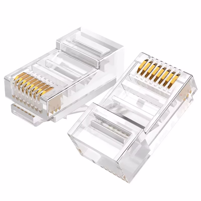 Each RJ45 connector features gold‑plated contacts for low resistance and stable signal transmission, plus a robust plastic housing that secures the cable and withstands repeated use. The connectors are easy to crimp with a standard RJ45 crimping tool, allowing you to create custom patch cables, extend existing lines, or replace damaged ends quickly and professionally.